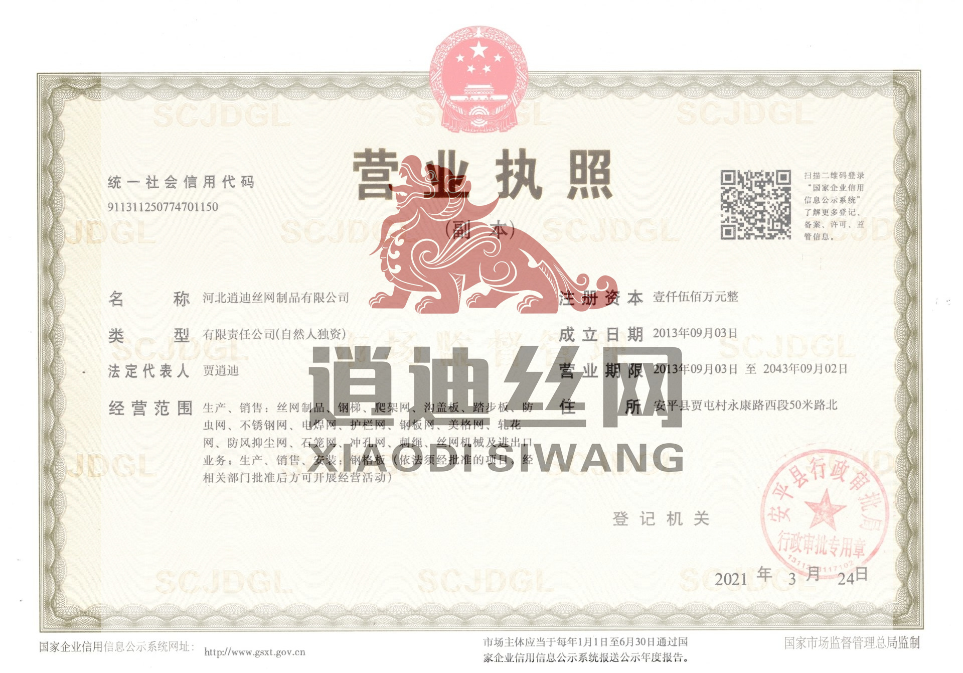 河北逍迪絲網(wǎng)制品有限公司誠(chéng)信天下,誠(chéng)信是我們公司一個(gè)原則問(wèn)題不可撼動(dòng)的,以心中有誠(chéng)信的思想結(jié)交五湖四海的朋友,能達(dá)到雙贏是最好的,我們堅(jiān)信朋友多了路好走,我們公司都是老朋友多,我們一直是這樣做的。河北逍迪絲網(wǎng)制品有限公司成立于2013年注冊(cè)資本壹仟伍佰萬(wàn)整,主要生產(chǎn)沖孔網(wǎng),鋼格板,金屬防蟲網(wǎng),如實(shí)的實(shí)體廠家,是一家-研發(fā)-銷售-生產(chǎn)-安裝-售后一條龍公司,2019年通過(guò)了ISO 9001認(rèn)證管理體系符合GB/T 19001-2016/ISO 9001:2015標(biāo)準(zhǔn),同時(shí)通過(guò)了SGS認(rèn)證,擁有商標(biāo)版權(quán)2品牌,擁有一個(gè)著作版權(quán),河北逍迪絲網(wǎng)制品有限公司位于中國(guó)有名的(絲網(wǎng)之鄉(xiāng))安平縣,于天津,北京,雄安,石家莊相鄰,交通非常發(fā)達(dá),出口可以選擇天津港口非常近每天都有接貨送貨往返車輛,空運(yùn)可以選擇石家莊正定機(jī)場(chǎng),附近也有鐵路運(yùn)輸,當(dāng)?shù)剡€有兩個(gè)生態(tài)物流園區(qū)發(fā)往全國(guó)各地,我們沖孔網(wǎng)工廠生產(chǎn)設(shè)備有:普通沖壓機(jī),高速?zèng)_壓機(jī),自主研發(fā)小微孔沖壓機(jī),龍門沖,磚塔沖孔,重型沖孔機(jī),萬(wàn)瓦級(jí)別激光切割機(jī),3000W激光切割機(jī),焊接設(shè)備,折彎?rùn)C(jī),校平機(jī),剪板機(jī),精密校平機(jī),(對(duì)板面平整度要求苛刻的客戶群體0.5-0.2誤差)我們公司銷售市場(chǎng)沒有局限性國(guó)內(nèi)國(guó)外都供應(yīng),擁有出口權(quán)...